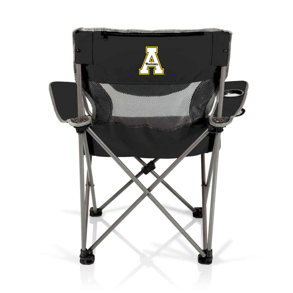 The Campsite Camping Chair is a highly-portable outdoor folding beach chair that folds into a drawstring carrying bag with a shoulder strap and is decorated with your favorite Collegiate team's logo