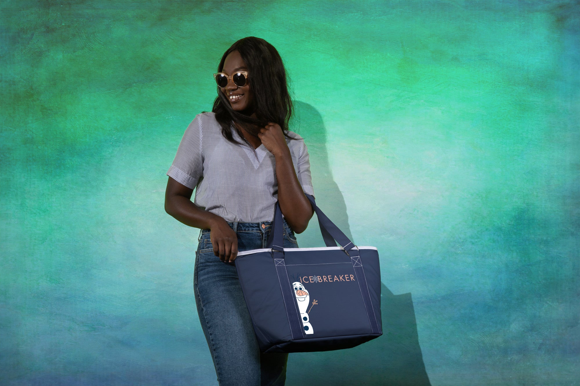 Bring the fun (and 24 cold cans!) with the Frozen 2 Olaf Topanga Cooler Tote Bag. The 600D polyester exterior and straps ensure durability and the water-resistant PVC interior liner ensures no leaks will dampen the mood. This insulated cooler tote takes you from the frozen food aisle to a backyard BBQ with ease.