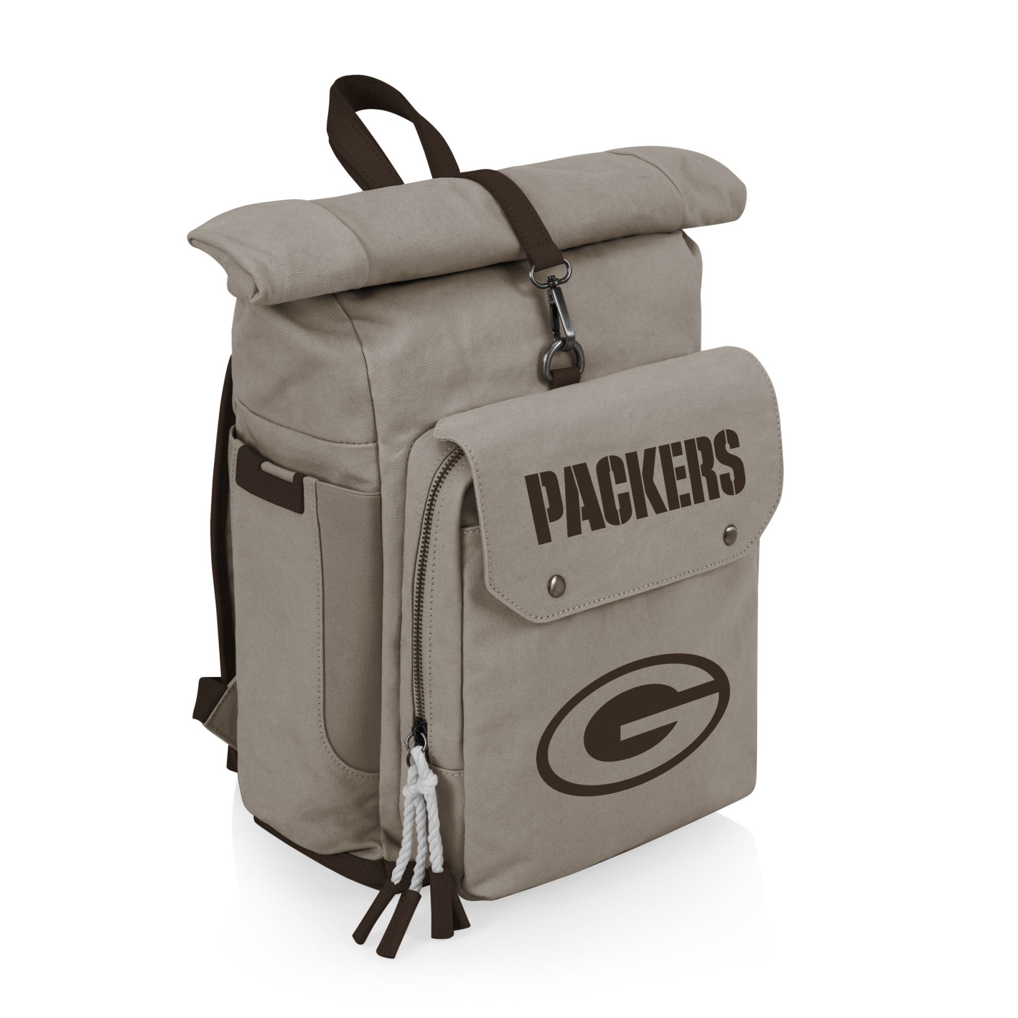 The Green Bay Packers Carmel Roll Top Picnic Backpack Cooler brings together a certified recycled Cotton canvas exterior with a waterproof, insulated, eco-friendly interior to create one stylish and functional package.