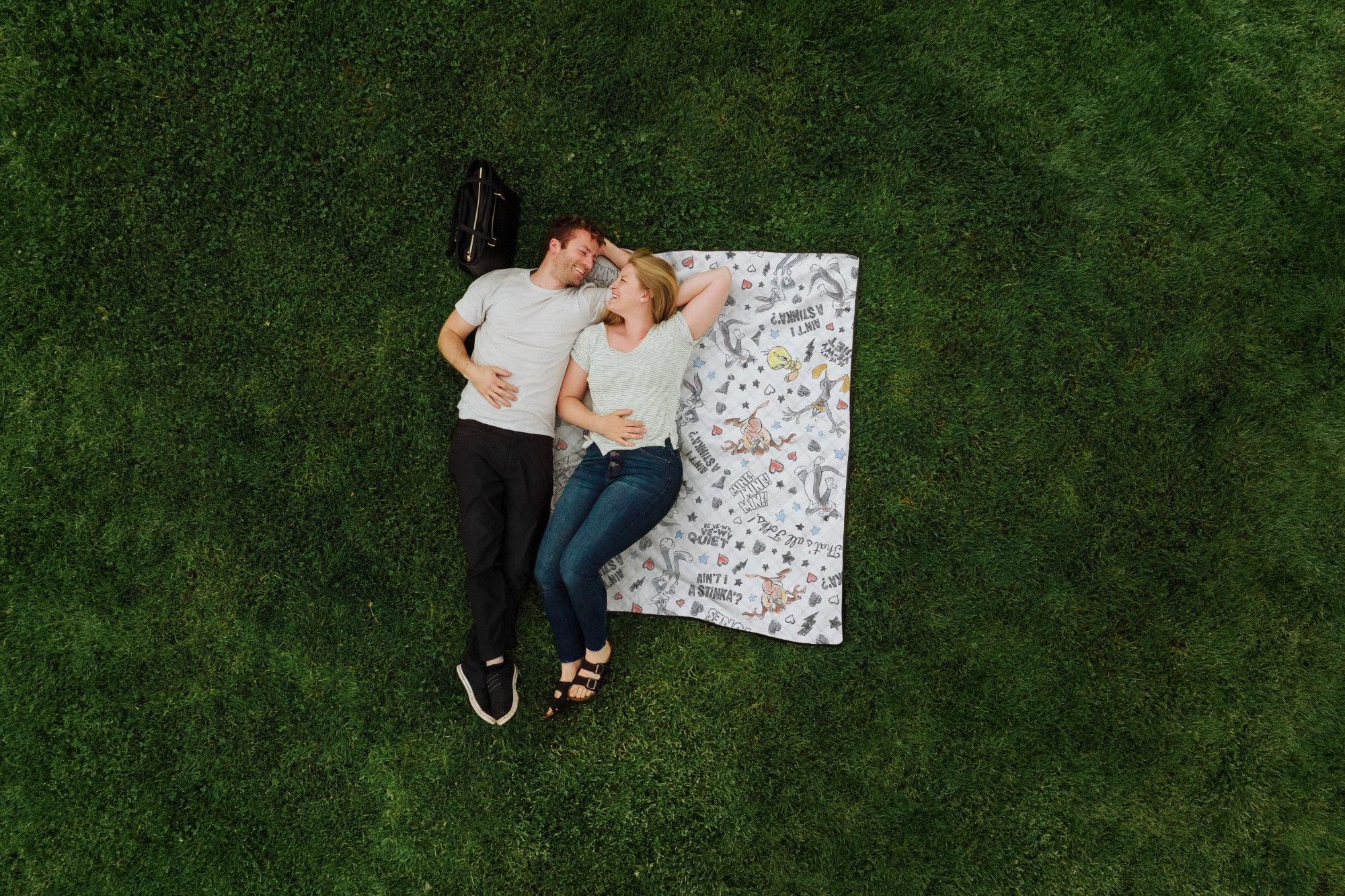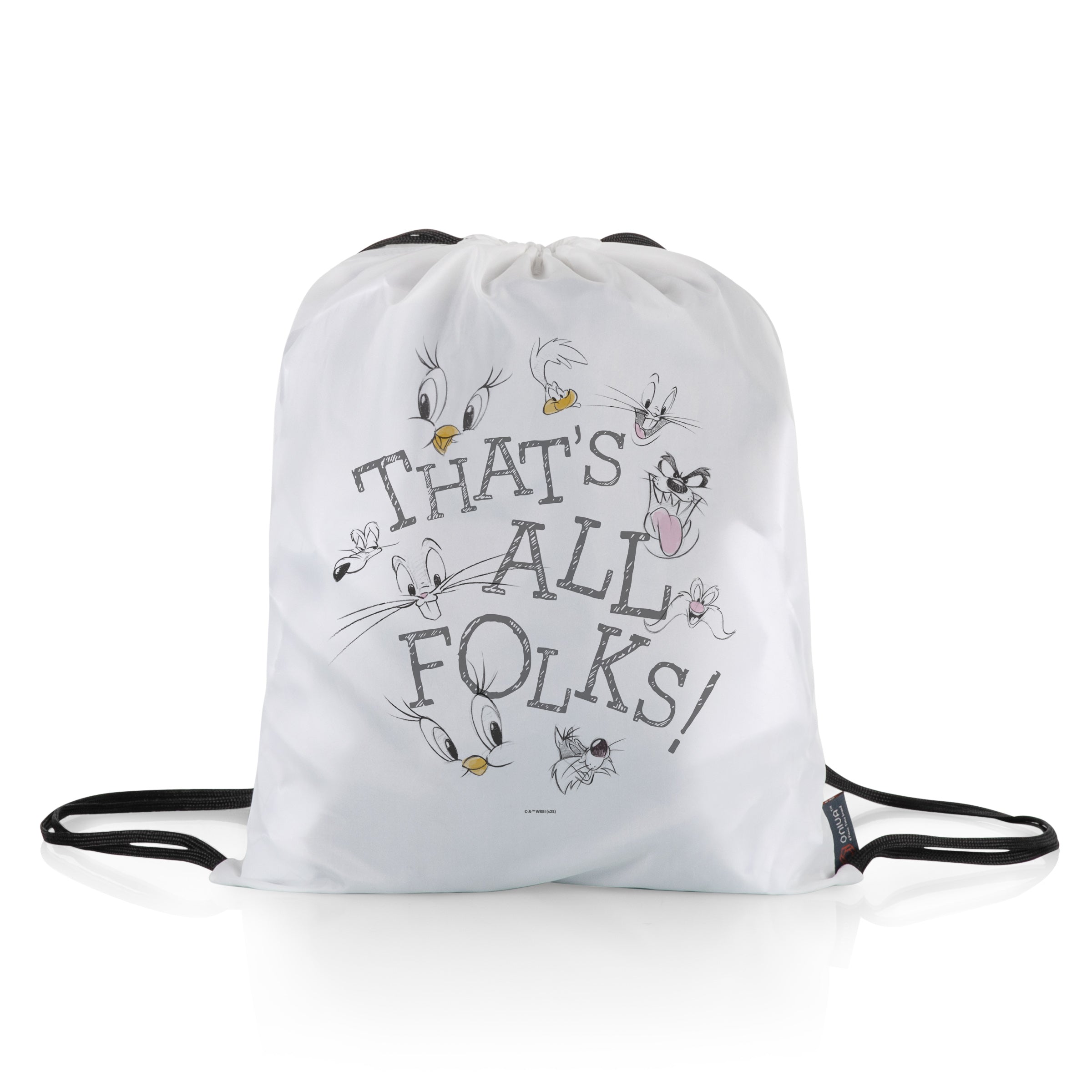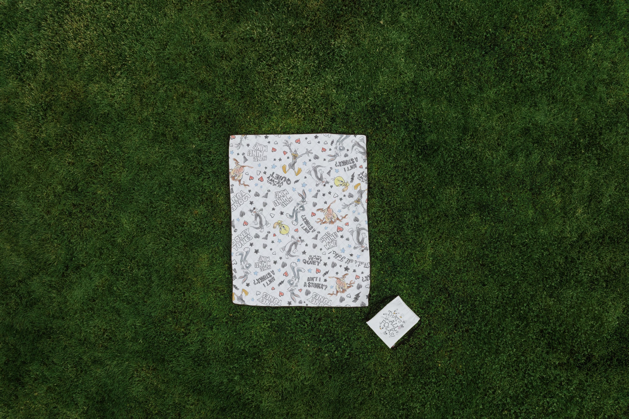 A water-resistant, machine-washable polar fleece picnic blanket with matching drawstring backpack, both printed with a Looney Tunes design featuring all your favorite classic characters?! VERY Impresa-ive.