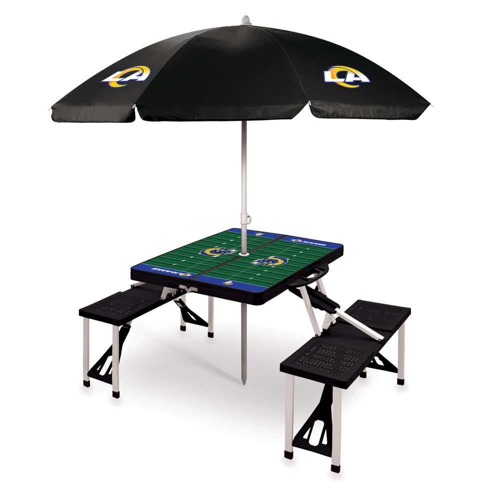 Image of Los Angeles Rams - Picnic Table Portable Folding Table with Seats and Umbrella