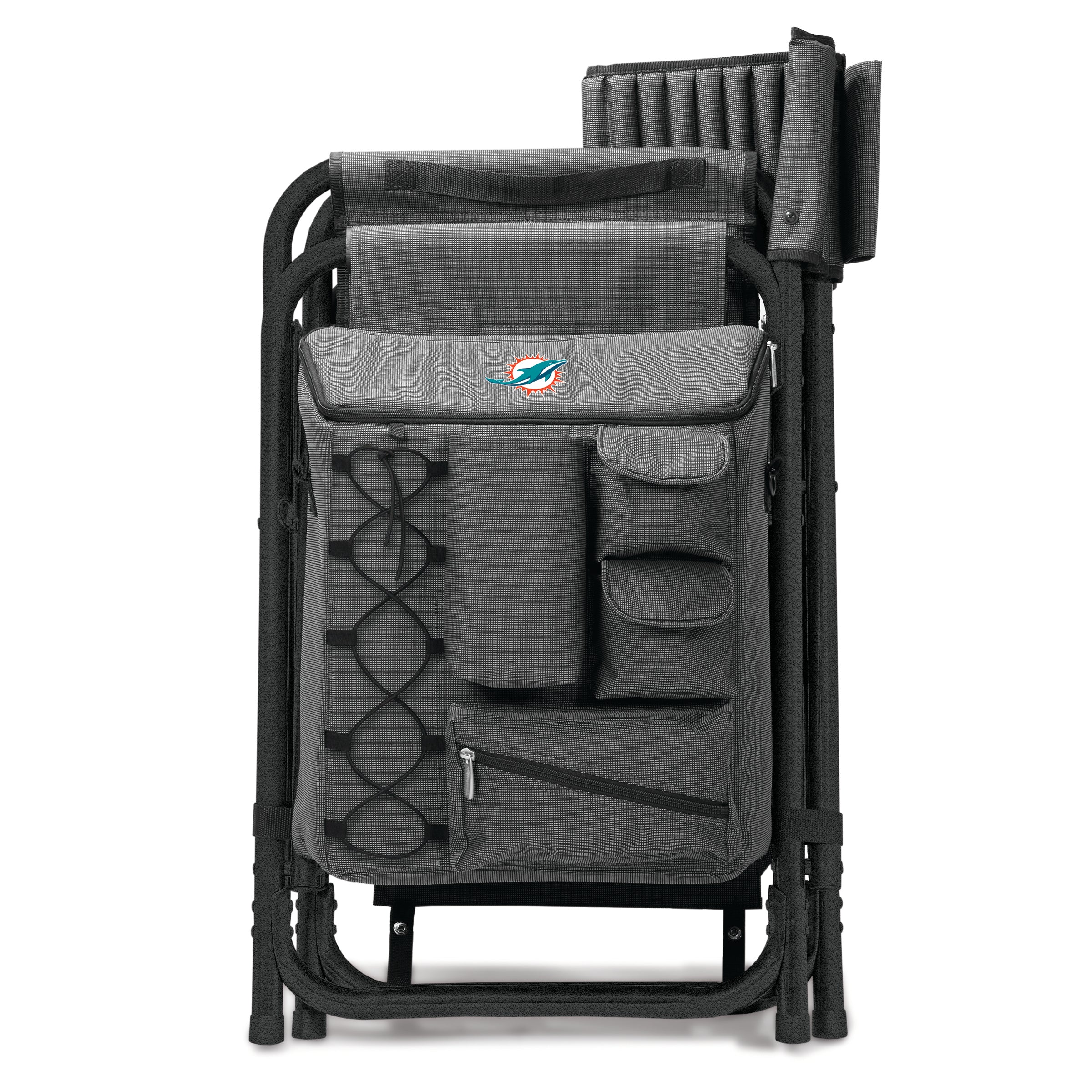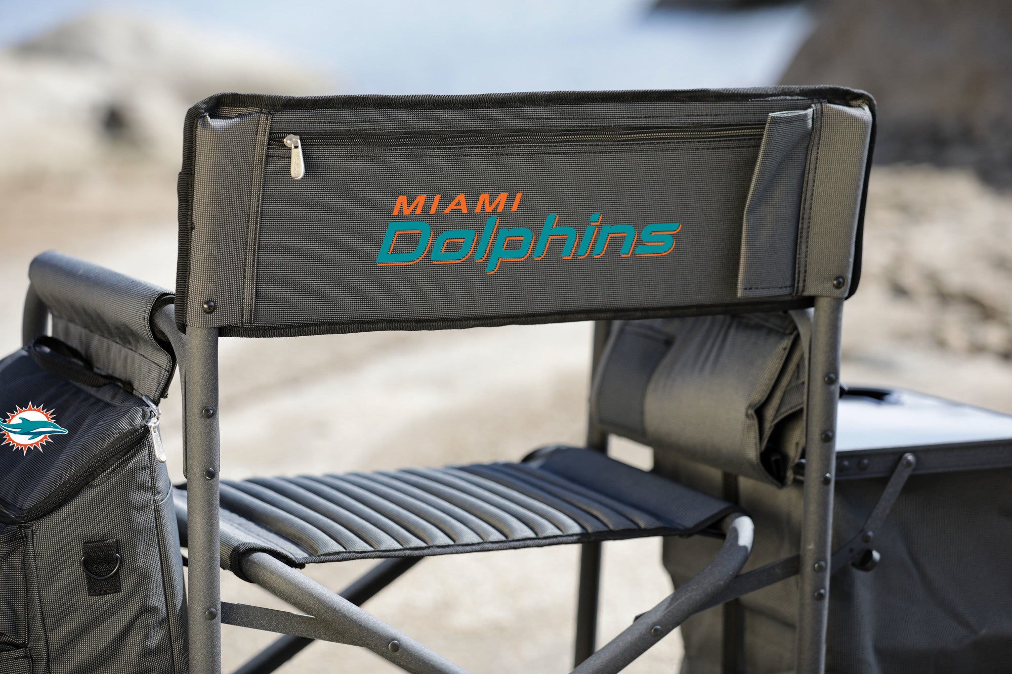 The Miami Dolphins Fusion Camping Chair is a heavy duty portable camp chair with so many features, you might make it your new office! Show off your team spirit everywhere you go with this chair, adorned with your favorite team's logo across the back and cooler.
