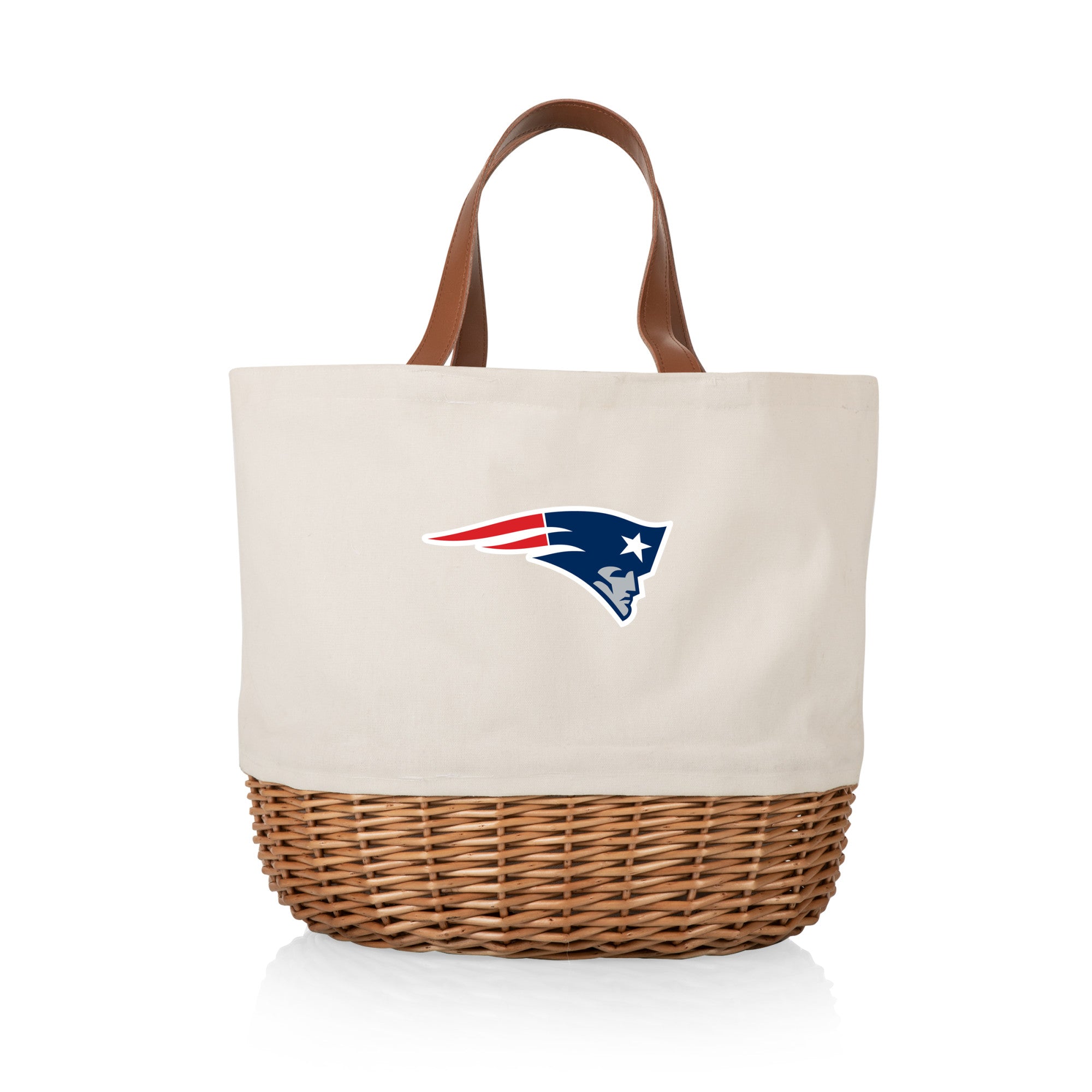 The New England Patriots Promenade Picnic Basket for 2 is a picnic basket set dressed up as a chic tote bag.