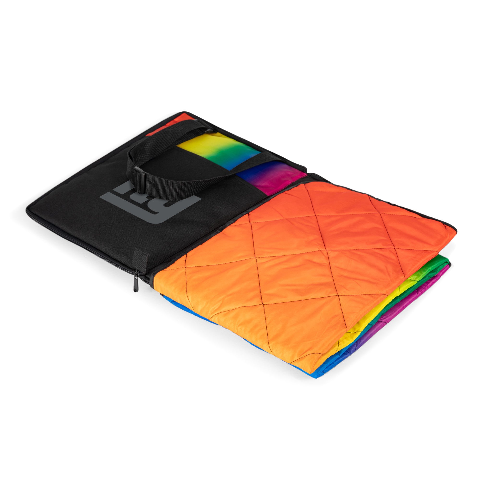 - 59" x 51" Blanket that folds/zips-up into a convenient carry tote with an adjustable carry strap