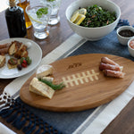 Show your love for football with Picnic Time's Touchdown! Cutting Board, a bamboo-constructed pigskin-inspired cheese board that doubles as a serving platter!