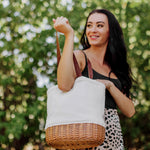 The Pico Canvas and Willow Basket Tote is a versatile wine and cheese tote perfectly sized for everything from toting your lunch to a day at the beach.