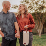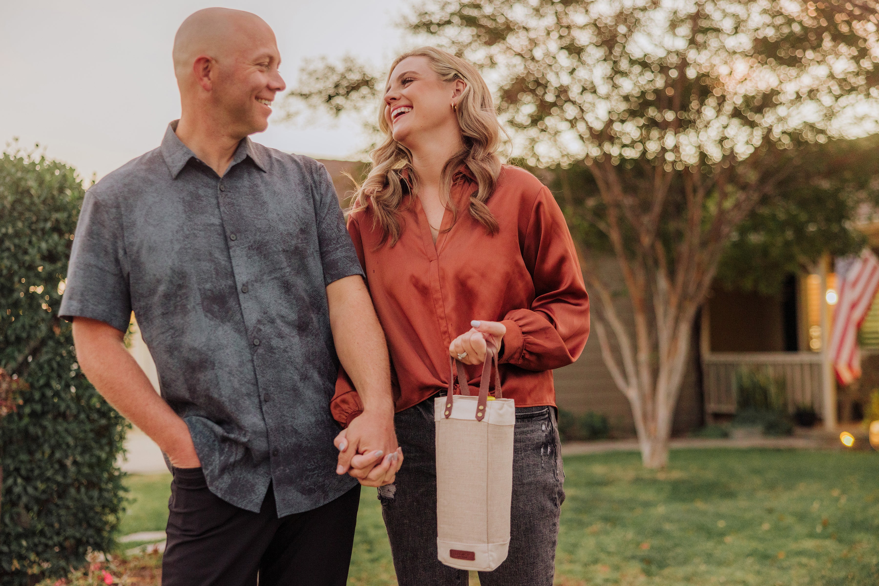 Picture yourself entering the party with a fabulous bottle of wine securely held in this rustic-chic insulated wine tote. It’s a very nice picture.