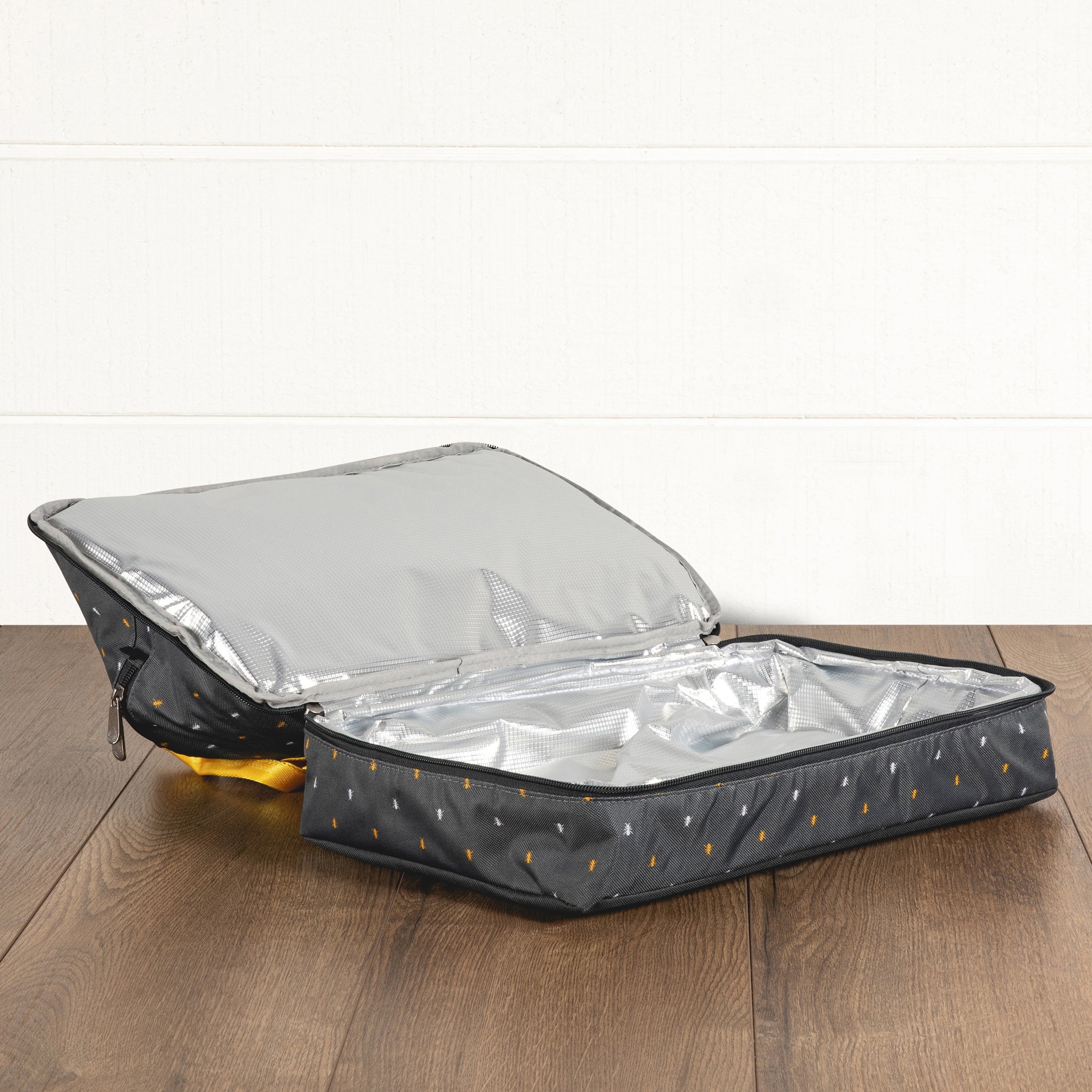 - Insulated compartment to use as a cooler or to store and transport warm casseroles up to 300 degrees Fahrenheit