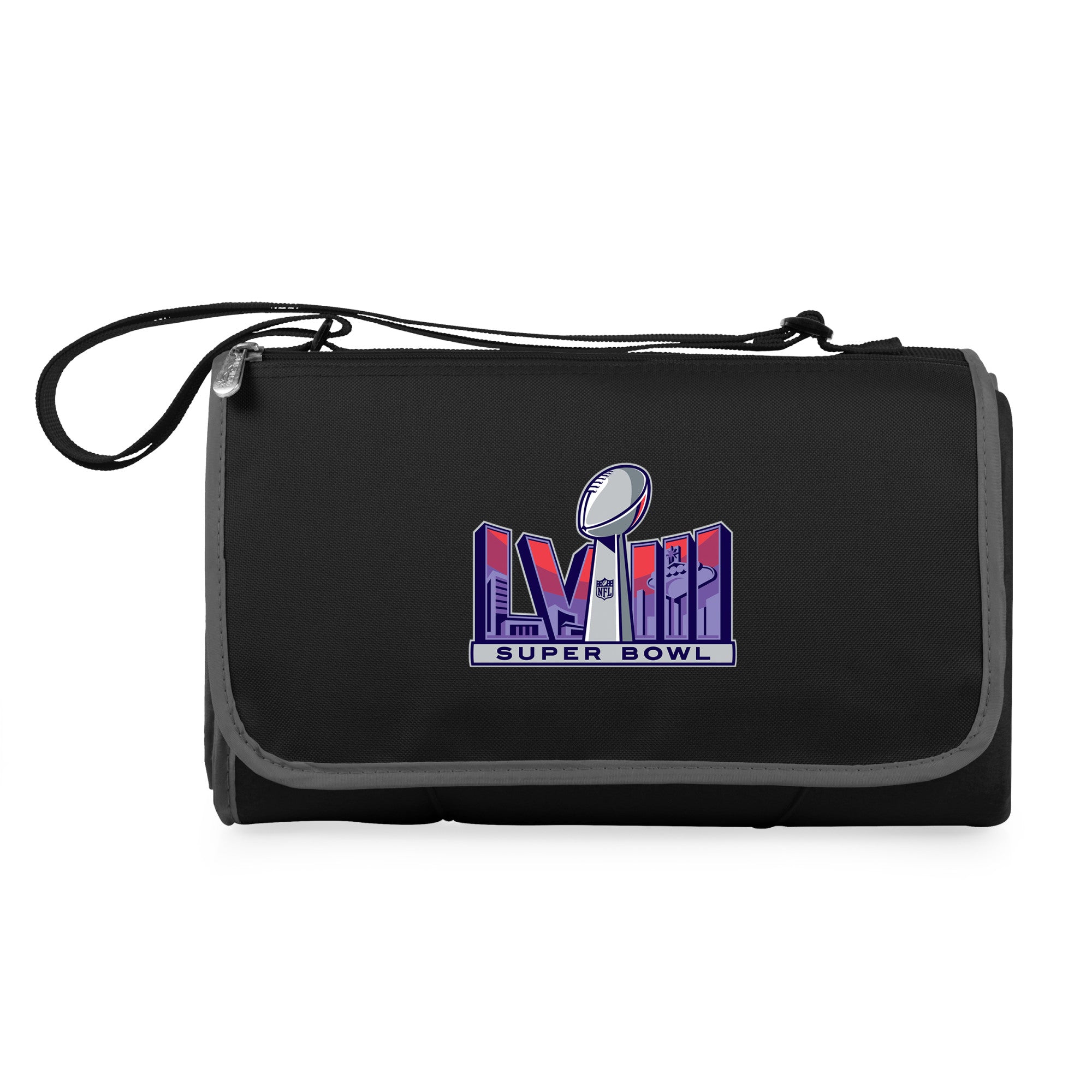 The Super Bowl 58 Blanket Tote Outdoor Picnic Blanket is a cozy portable camping blanket with soft fleece topside and water-resistant underside that packs into a compact carry tote.