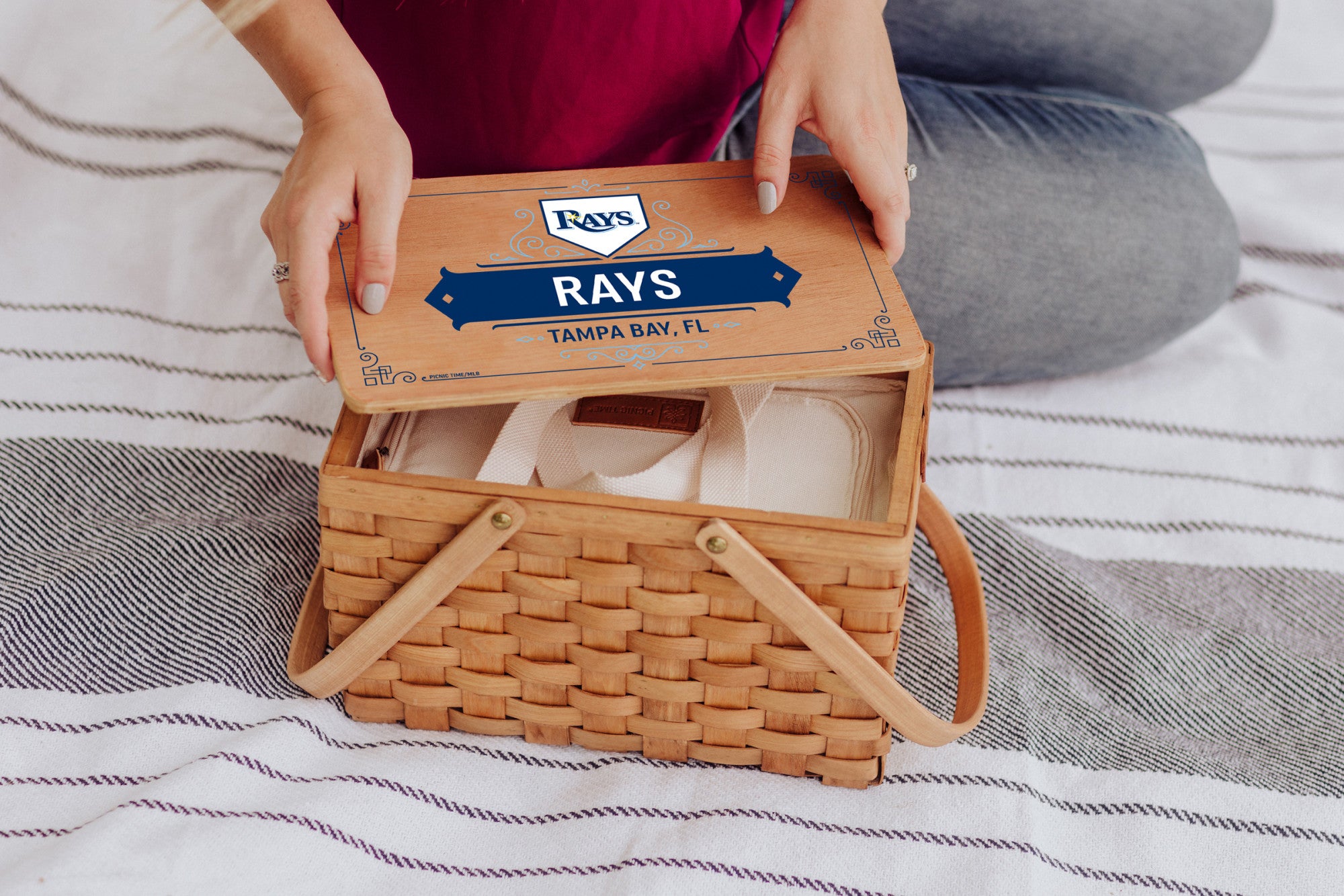 The Tampa Bay Rays Poppy Personal Picnic Basket is a handwoven wicker basket ideal for bringing a little country charm to your office lunch or for toting wine and snacks to an outdoor concert.